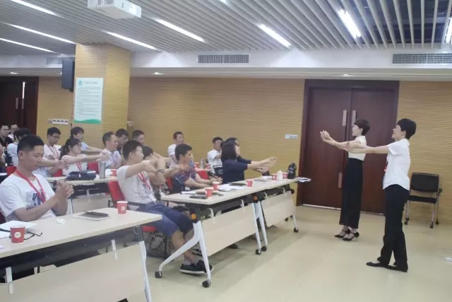 課間休息時間,華儀學院外訓部負責人王曼秋老師帶領(lǐng)大家做手指操。